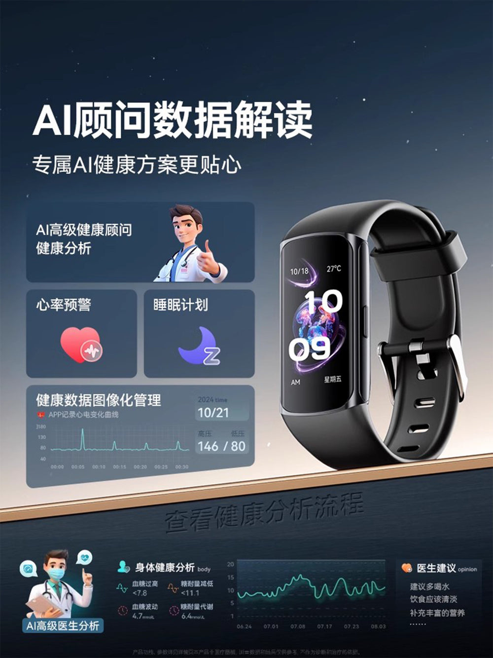 Advanced health research smart band with high-precision heart rate and SpO₂ monitoring, sleep tracking, ECG recording, and sports/running modes. Designed for daily health management and senior-friendly use, offering comprehensive wellness insights in a comfortable wearable.