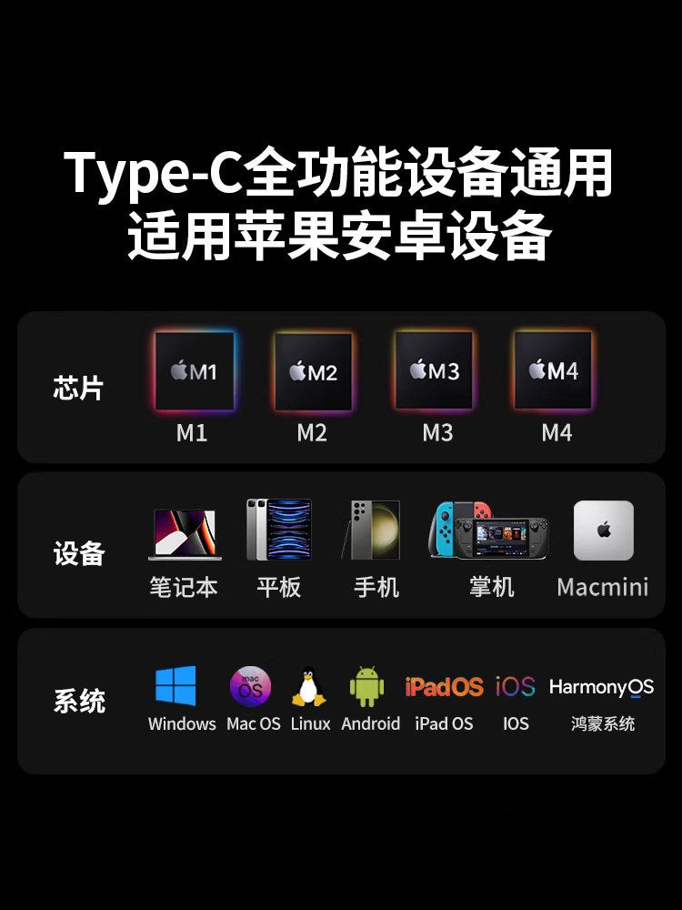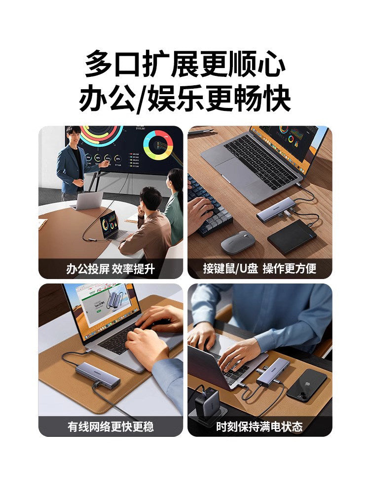 Multi-port Type-C expansion hub supporting HDMI screen mirroring, USB ports, and Ethernet connection. Designed for Thunderbolt 4 laptops, iPad, and Apple iPhone 17 series, providing stable high-speed data transfer and versatile connectivity for work and entertainment.