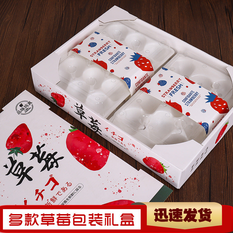High-end strawberry packaging box made from reinforced corrugated material. Sturdy and protective, available in multiple designs, ideal for premium fruit gifting, transportation, and retail display.